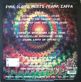 COMMENTS: GERMAN BOOTLEG WITH DELUXE COLOUR COVER. PRESSED ON BLACK AND COLOUR VINYL. ALSO RELEASED AS A PICTURE DISC WITH THE SAME MATRIX NUMBER. FRANK ZAPPA PLAYS ON INTERSTELLAR OVERDRIVE.