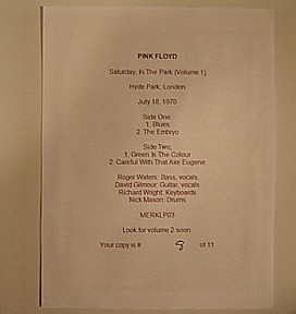 COMMENTS: ACETATE BOOTLEG ON BLACK VINYL WITH PLAIN COVER AND FRONT AND BACK INSERT. 11 HAND NUMBERED COPIES PRESSED.