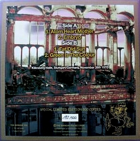 COMMENTS: EUROPEAN BOOTLEG IN DELUXE COLOUR COVER. 400 NUMBERED COPIES PRESSED ON RED, GREEN, BLUE, AND YELLOW VINYL. 50 NUMBERED COPIES (EACH) PRESSED ON MARBLED GREY AND MULTICOLOUR VINYL.